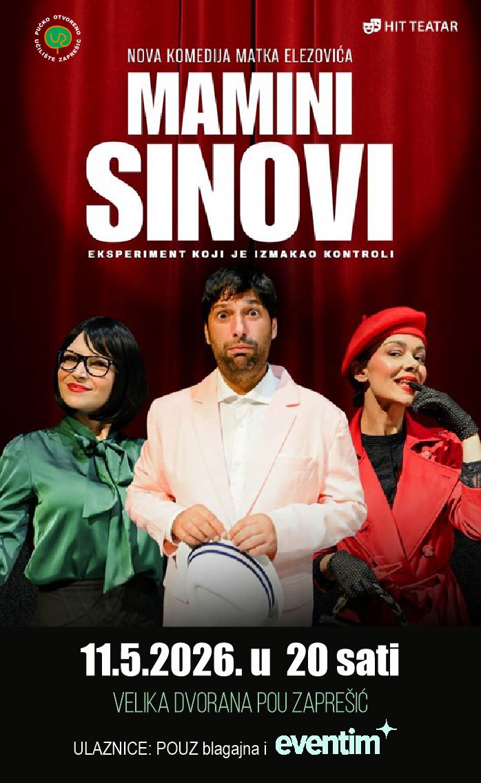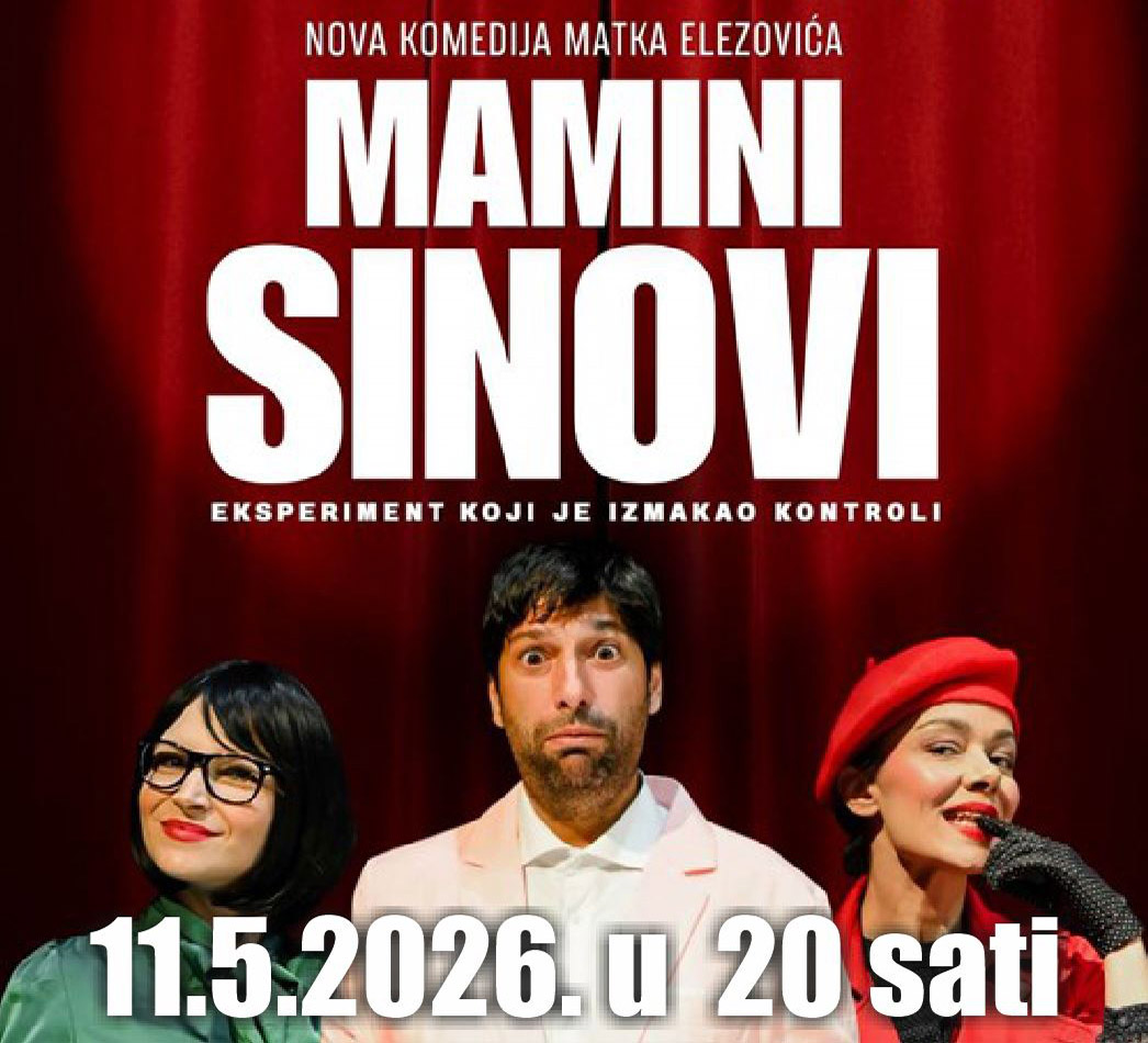 17 tra MAMINI SINOVI PRODAJA ULAZNICA PRODAJA ULAZNICA 17. travnja 2026. 8 Kalendar događanja, Mjesečni kulturni program, Novosti