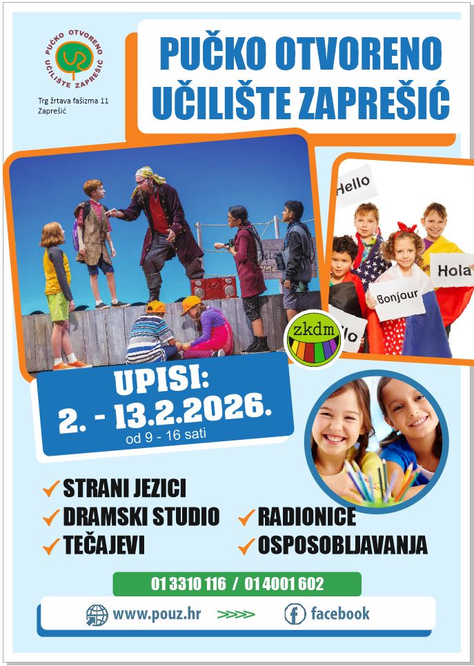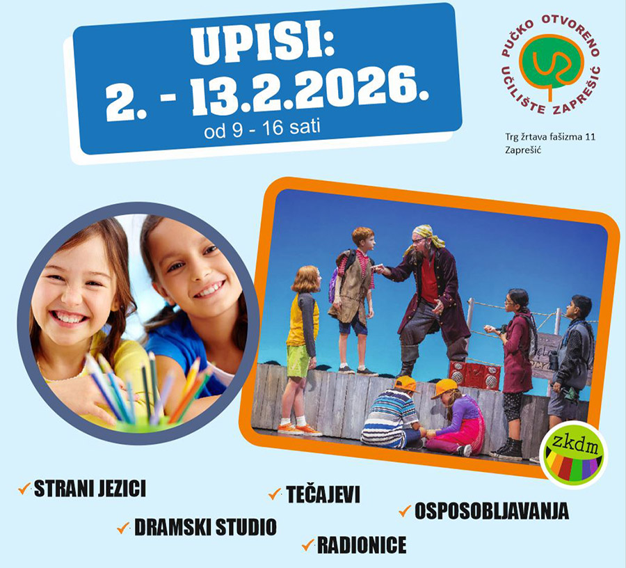 30 sij UPISI STRANI JEZICI DRAMSKI STUDIO – ZAPREŠIĆKO KAZALIŠTE ZA DJECU I MLADE TEČAJEVI I RADIONICE OBRAZOVANJE ODRASLIH 30. siječnja 2026. 9 Kalendar događanja, Mjesečni kulturni program, Novosti